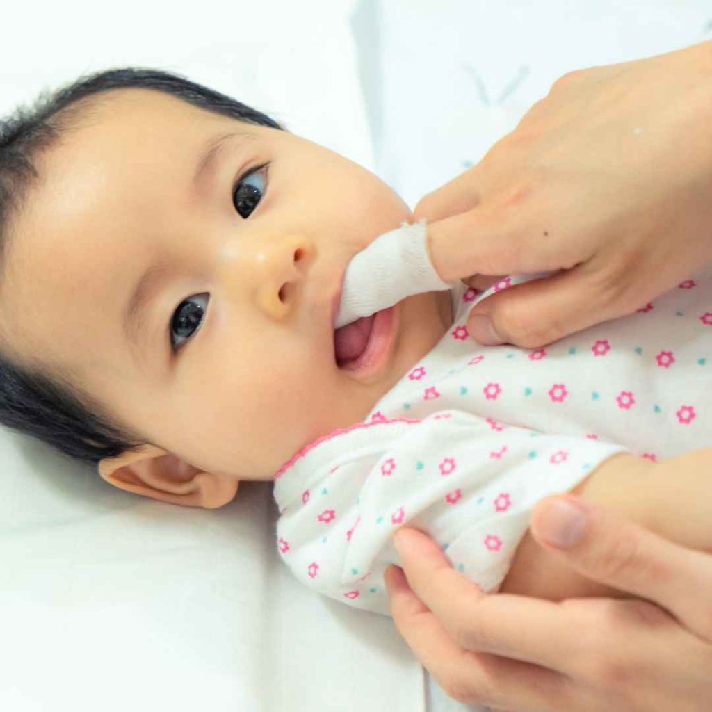 - Rutin membersihkan lidah, gigi, dan gusi bayi untuk mencegah dari penumpukan sisa makanan, misalnya dengan sikat bulu halus.